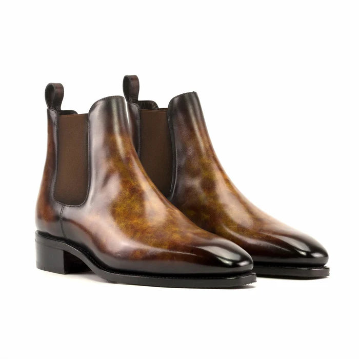 The hand-polished patina leather of our Chelsea Boots adds a touch of refinement to these adaptable shoes.