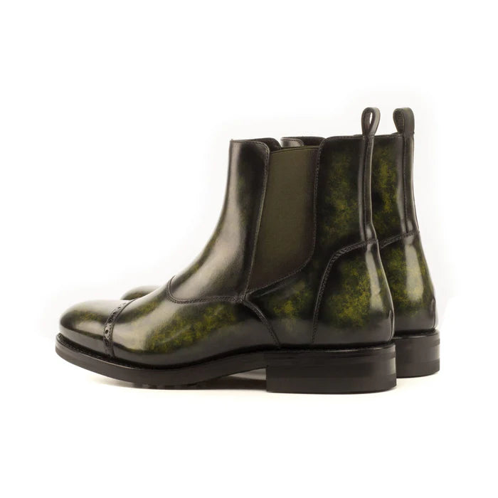 Get these classic Chelsea boots, which are made by hand from leather with a characteristic green patina.