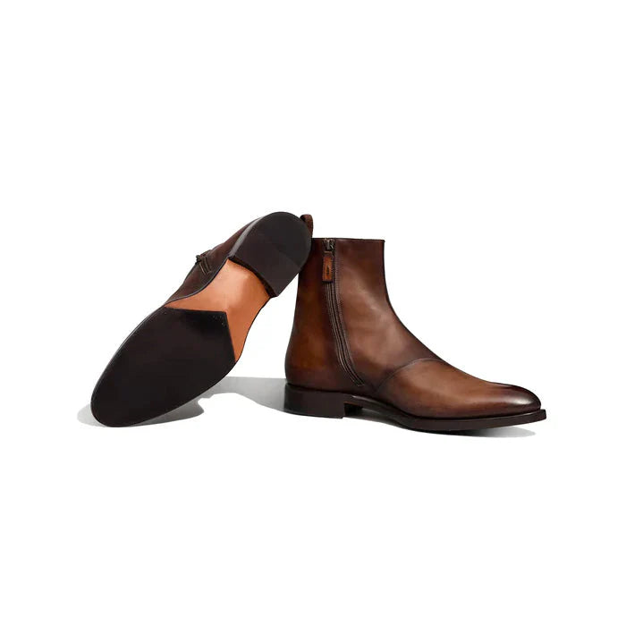 This boot has toe cap with delicate cuban-style punching and is made of calf leather.