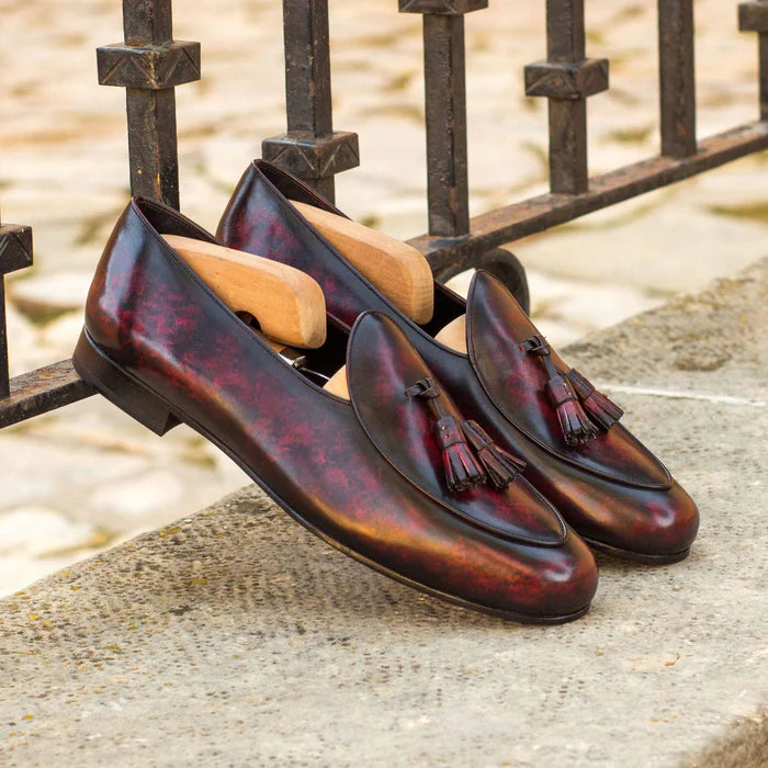 A handsome tassel accent and patina leather makeover for these uber-stylish Belgian slippers!